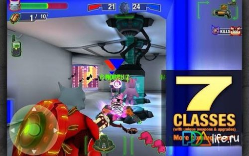 В игре будут принимать синие и красные звери всего до 8 игроков на поле. После каждого уничтожения вы будете возрождаться после 3 секунд. Управления осуществляется с помощью двух джойстиков и специальных кнопок. Один будет двигать вами по полю, а другой управляет прицелом и стрельбой. Крутить камеру обзора можно с помощью второго джойстика или просто проводя пальцем по экрану. Принимайте участия в медвежьих битвах используя интернет на вашем устройстве.