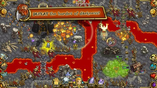 Главной особенностью игры является то, что башни, в нашем случае это рыцари, можно передвигать в любое место. Вы сначала их можете поставить на начало пути, а потом их переместить назад, чтобы они добили их, при этом передвигаются они быстрей чем враги.