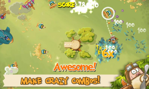 Собирайте разные «кнопочки», которые будут появляться в этапах, они дадут вам разные способности и вам будет легче бороться с наступающим соперником. Pigs in Trees - увлекательная игра, с которой вы проведете много времени, пройдя все 75 уровней веселья.