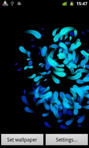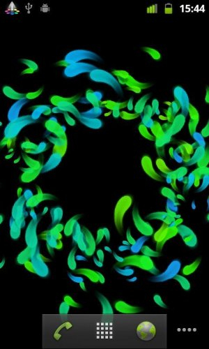 Красивые разноцветные огоньки будут появляться и кружиться на черном фоне в живых обоях Twisted Colors.