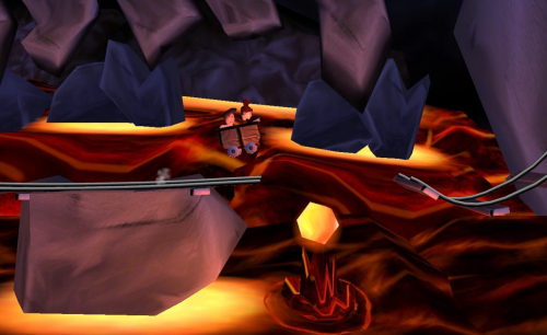 Компания друзей, катавшаяся на старой повозке по заброшенным железнодорожным рельсам, попала в беду. Они провалились в подземную шахту с поломанными путями рельсов и подземными жителями. Помогите им выбраться из тоннеля на вагончике, перепрыгивая с одной платформы на другую и миновать навали камней и местных зверьков, едущих на тележках.
