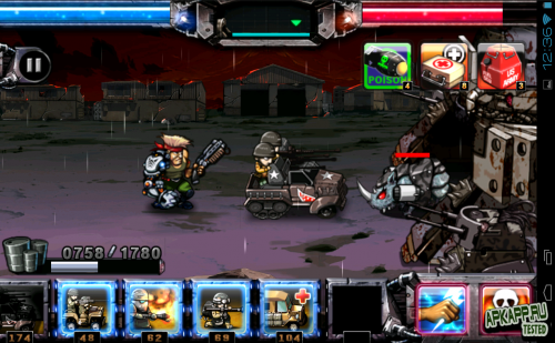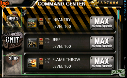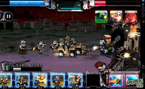 Ваша армия будет состоять из одного мощного персонажа, который будет стрелять из своего дробовика и быть ногой с ближнего расстояния. Он владеет сверхсилой, которая будет заряжаться и время от времени доступна. Пополнять ряды своей войска вы сможете, когда наберете нужное количество нефти. Вам будут доступны рядовые солдаты с пулеметами, гранатометчики и различная боевая техника. Уничтожая врага, вы будете собирать маленькие слитки золота и бочонки нефти, которая пополнит ваш запас энергии. Можно также будет выпустить нового юнита. Заработанное золото можно потратить на приобретения помощи в виде аптечек, дополнительных запасов топлива, вызова авиации и нанесения ракетных ударов. Ещё доступно поднятие уровня своим бойцам и главному герою. Поднимая качества персонажей, вы увеличиваете его здоровье, а также уровень ущерба, который он наносит врагам.