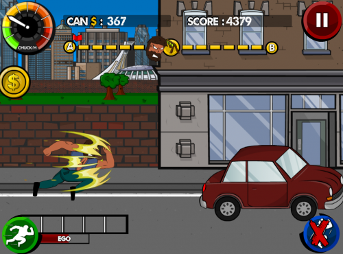 Управляйте им с помощью двух кнопок — прыжка и ускорения. Набирая скорость, вы будете прыгать на большие расстояния, перепрыгнуть машину вам покажется простым пустяком. Бейте своих недругов и набирайте силу ярости, которую нужно выбрасывать на стоящие машины на пути. Но если запас силы упадет - не останавливайтесь, а перепрыгивайте преграды