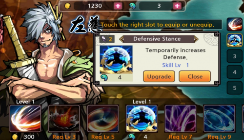 Развивайте характер своему персонажу, наделяя его специфическими коронными ударами, которые заряжаются и время от времени будут доступны для использования. Собирайте различные камни и золото после уничтожения врагов. На них можно сделать апгрейд способностями и купить новые мечи и доспехи. В Undead Slayer есть и другие герои, которые помогут вам в бою. Для этого нажмите на иконке персонажа, и он пойдет на маленький отдых, а в сражения вступит его помощник, найденный в трущобах Китая. Воспользуйтесь помощью своего коня и ястреба нажатиям на специальные кнопки-иконки.