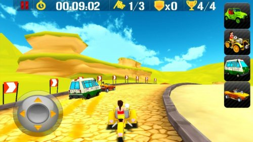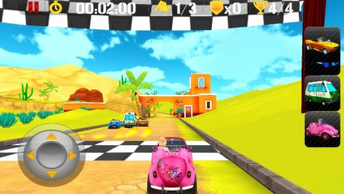 Перед тем как начать игру, вы должны выбрать себе машину. На выбор есть несколько автомобилей с гонщиками, каждый из них уникален по скорости и управлению, и будет разно эффективен на разных типах трасс.