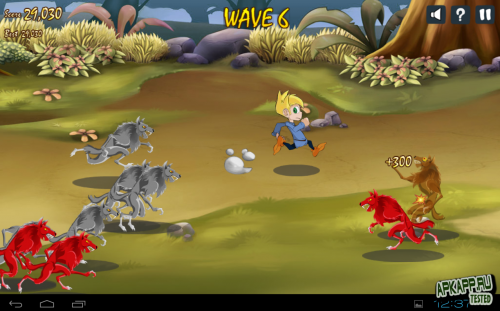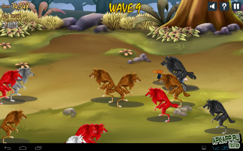 Как далеко герой сможет убежать, посреди густого леса, где обитает стая голодных хищников. Все зависит от вас и вашей ловкости пальцев и молниеносной реакции. Тапайте на окружающих зверей, чтобы уничтожить их. С повешением уровня будут появляться новые, которых не так просто ликвидировать. Одни из них будут нуждаться в двойном попадании, а другие будут очень быстро двигаться. Иногда в помочь вам будут предоставляться взрывчатые вещества в виде бомб. Истребляйте волков с помощью нескольких пальцев, например, можно двумя пальцами одновременно прикасаться к экрану и уничтожать сразу двух.