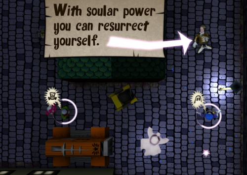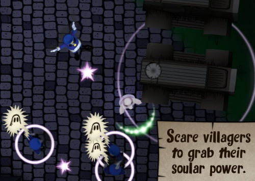 Вы управляете душой умершего героя Германа, которая всеми силами пытается вернуться в свое тело, но для этого нужна специальная энергия и в большом количестве. Наполните запас энергии собрав ее вокруг домов и напугав свободно гуляющих людей. Призрак будет свободно перемещаться по карте в поисках своих жертв, как только люди его увидят они оставят небольшую часть энергии. Используйте подручные средства, которые еще больше напугают прохожих, воспользуйтесь частью энергии для оживления предметов.