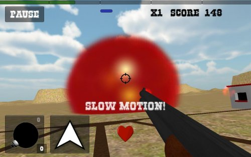 Проверьте свою реакцию и меткость по тарелочкам, реагируйте на объекты и направляйте своё ружьё в нужном направлении. Управлять положением ружья нужно с помощью акселерометра, наклоняя свое устройство влево или вправо. Когда мушка ружья будет над целью, тогда делайте выстрел. Прогнозируйте полеты тарелочек и поражайте немного наперед, чтобы достоверно быть уверенным в попадании. Игра имеет несколько режим стрельбы: аркада, выживания, турнир.