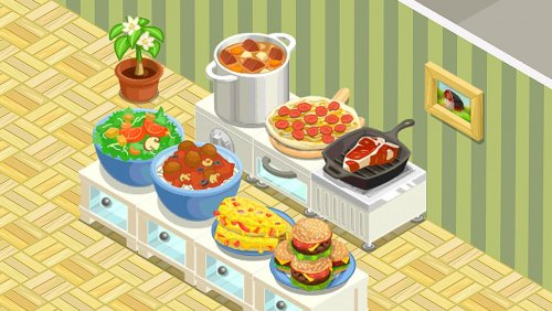 Большое количество людей будет приходить к вам покушать, кто-то будет брать яичницу, кто-то пончики или фруктовый салат, и все они будут платить за блюдо монетками. Покупайте новые вещи для ресторана, такие как: столы, стульчики, часы, картины, телевизоры, новые печки. Только ваша фантазия может ограничить ваши возможности в украшения.