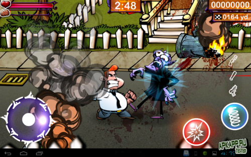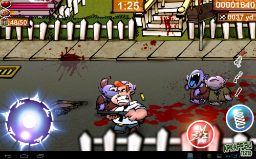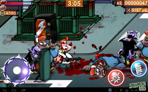 Перед тем как начать, нужно освоить навыки управления, после чего возвращайтесь в главное меню и проходите уровни. Ваш герой будет двигаться по улице и уничтожать разнообразную нечисть. Будут также атаковать: граф Дракула, девушки, уличные банды, толстяки и даже пришельцы с планеты Мельмак. Бейте противников битой или воспользуйтесь дробовиком. Когда их станет очень много, и вы не в силах справиться битой – воспользуйтесь пистолетом.