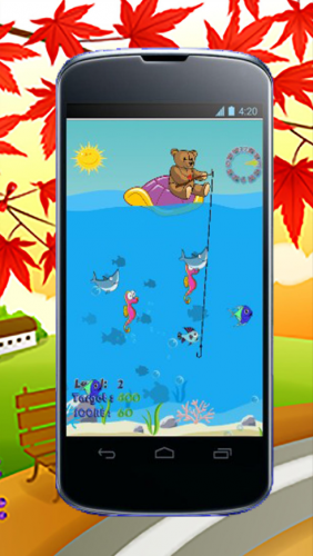 Помогите медведю наловить добычи, ему так хочется подкрепиться, он уже давно не ел. Закидывайте удочку и ловите рыбу, как только у вас будет клевать персонаж будет тянут, вам нужно только разрезать добычу пополам с помощью движений по сенсорному экрану. Здесь вы найдете свой магазин, за очки вы можете купить новые снасти, это позволит вам ловить больше и других видов водных обитателей.