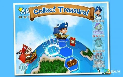В детские настольные теперь можно участвовать и на планшетах, а это одна из таких. Здесь вам предстоит стать морским разбойником и найти спрятанные сокровища знаменитого пирата Барнакла Билла. Кроме вас будут участвовать и другие, которыми могут стать ваши друзья. Вы будете крутить рулетку и выполнять ходы по клетках, чтобы добраться к четырем сундукам, в которых находятся четыре части карты, ведущей к тайнику