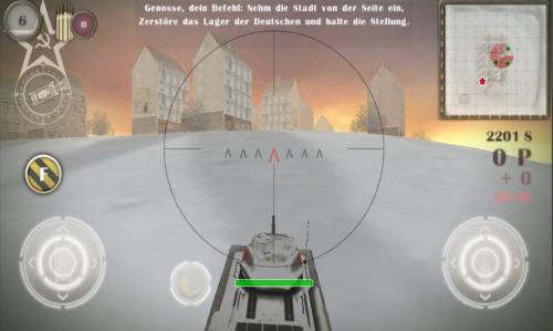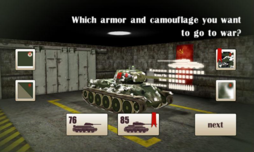 Побывайте в середине советского танка Т34, оснащенным дизельным двигателем, и отправляйтесь выполнять задания. Вам придется уничтожить вражескую технику, такие как Тигр и Пантера, грузовики и сторожевые вышки, прежде чем вы доберетесь к флагу врага. Управляйте своим танком с помощью двух джойстиков по углах экрана. Левыми кнопками вы будете оборачивать гусеницами танка и выбирать направления движения, а правым крутить пушку, для прицеливания и поиска соперника.