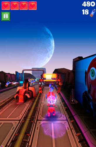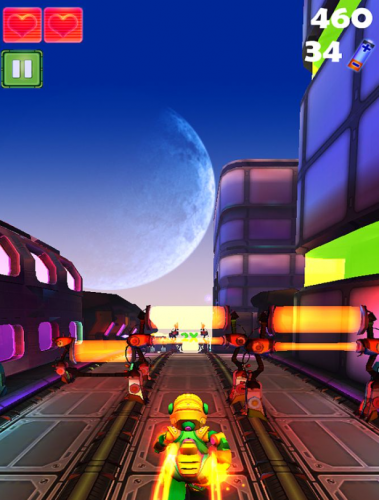Помогите роботу Джорджу собрать батареи уклоняясь от препятствий в раннере - Robopop Trek.
