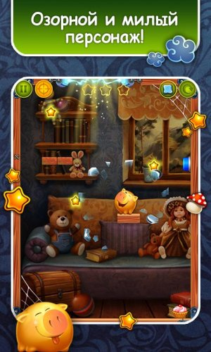 Симпатичная свинка хочет выбраться с темного ящика, а вы должны ей помочь. Натягивайте свинку и рассчитывайте траекторию полета, чтобы она добралась до солнечных лучей. Перепрыгивайте с полки на полку и и обходите разные опасности. Также стоит собирать звезды, которые дадут вам дополнительные очки. В игре множество веселых уровней и интересных игровых комнат.