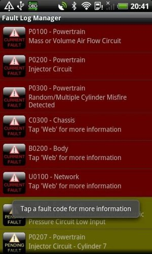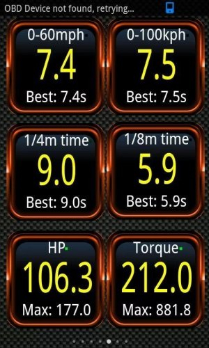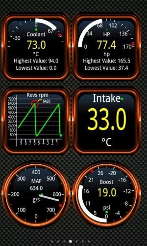 Программа покажет на главный экран состояния вашего двигателя: обороты, компрессия, скорость, наддув воздуха, температура воздуха, текущий расход топлива и много другого. Torque Pro может прочитать ошибки двигателя и, если возможно, она их сбросит.