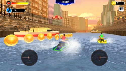 Покажите на что вы способны, как далеко вы сможете доехать на гидроцикле, преодолевая препятствия. Набрав большую скорость, вам нужно добраться к следующему уровню, для этого нужно собрать максимальное количество монеток и не врезаться в остров или корабль.