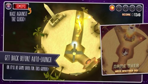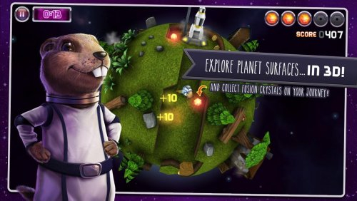 Вращайте планету, чтобы бобер собрал все кристаллы и добрался до ракеты - Gopher Launch.