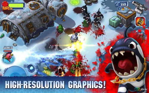 Здесь вам нужно управлять обеими руками, одной двигать джойстик управляющим направлением героя, а вторая рука будет отвечать за стрельбу из оружия и использования купленных способностей, таких как вызов авиации, нанесения ядерного удара.