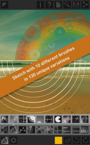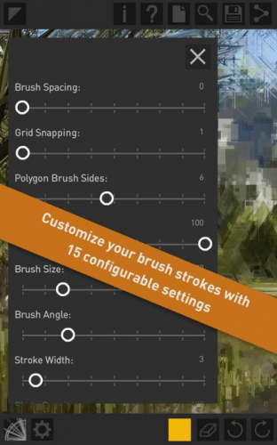 Воспользуйтесь геометрическими кистями и пресетами. Наложите один или несколько из множества эффектов и посмотрите на результат. Приложение позволяет профессионально настроить эффект, настроив толщину линии и прозрачность.