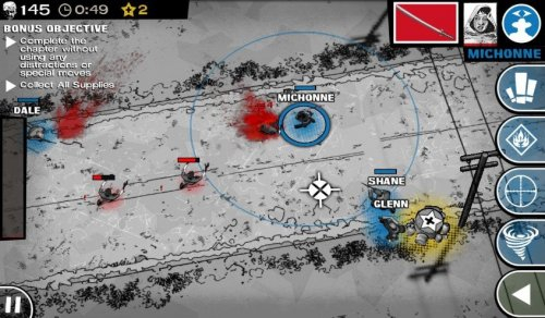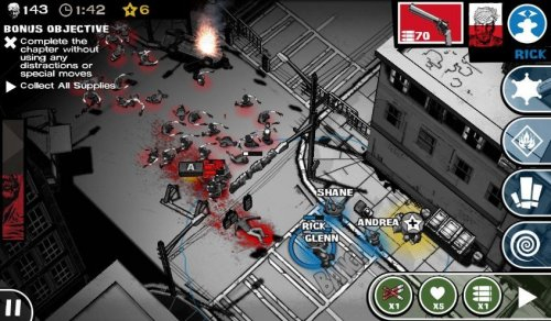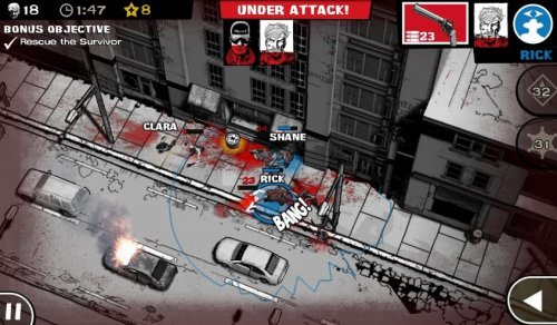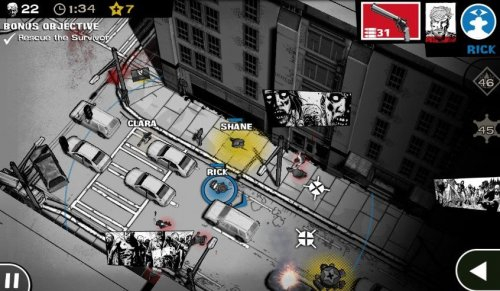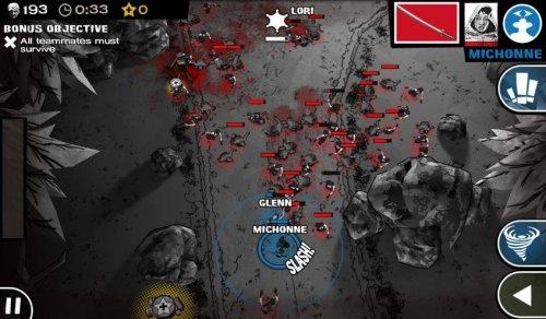 В игре The Walking Dead: Assault на android устройства, вам придется командой из одного или четырех человек. Проходя уровни, вы будете разблокировать новых персонажей, таких как: Гленн, Шейн, Карл, Андреа, Лори и другие. Вы можете формировать свою уникальную группу, так как каждый из них владеет своим оружием и наносит урон противнику из разного расстояния. Также имеет свои скрытие способности, что влияют на всю команду.