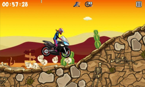 Простая гонка, с довольно симпатичной графикой и физическим движком. Здесь легкое нажатия на экран заставят мотоцикл быстро развивать скорость, вам придется быть осторожным с управлением, чтобы не перевернуться и не начинать сначала.