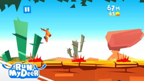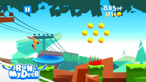 Помогите оленю пробежать как можно дальше, перепрыгивая препятствия и собирая золотые монетки - Run, My Deer.