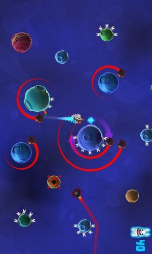 За короткое время соберите всех маленьких кроликов минуя опасности в виде ракет, электрических зарядов, мин и других. Кружить вокруг планеты можно в двух направлениях против и за часовой стрелкой, выбирая нужное направление, чтобы не пострадать на выпущенном снаряде. Ваш герой может сбить её догнав ее с зады, или сделать так, чтобы две столкнулись.