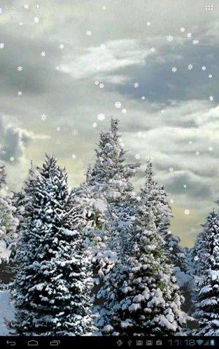 Замечательные зимние живые обои со снегопадом и лесными ёлками - Snowfall Live Wallpaper.