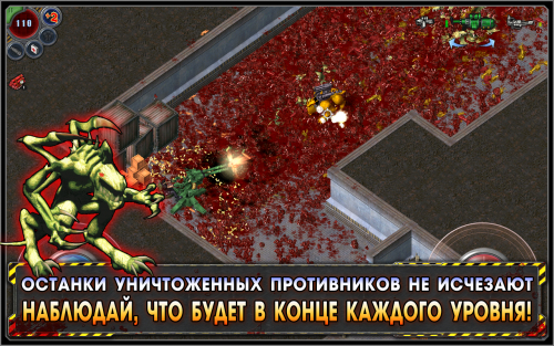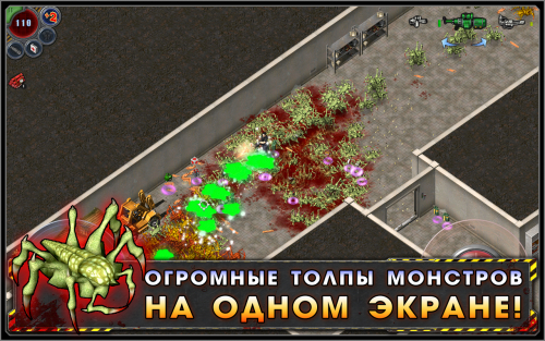 Зачистите территорию от монстров, уничтожьте их логова, найдите ноутбуки с исследовательскими данными, открывайте ворота, находя специальные ключи, и многое другое. Здесь вы увидите привычное управление с помощью двух джойстиков. Одним вы будете управлять направлением персонажа, а другим оборачивать направлением стрельбы. За всем действием, происходящим на игровой поверхности, вы будете наблюдать с высоты, благодаря смещенной камере над персонажем.