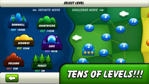- Имеются бесконечные карты для езды: винный погреб, лес, сельская местность, вулкан, под гору и шоссе.
