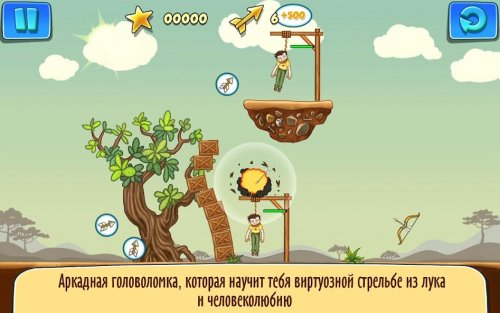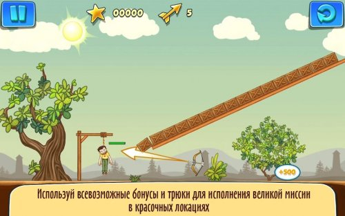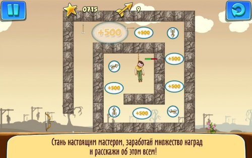 Но не бойтесь, игра довольна красива, привлекательна и интересна. Вы будете спасать людей, которые пытаются покончить со своей жизнью и уже повешены. Ваша задача взять лук и попасть в веревки, чтобы оборвать их. Идеальный выстрел, это когда одной стрелой, вы разрываете большое количество верёвок. Однако помимо этого, нужно отстреливать и стервятников, которые только и ждут, когда можно напасть на повешенного. Тщательно выбирайте цели и делайте только меткие попадания!