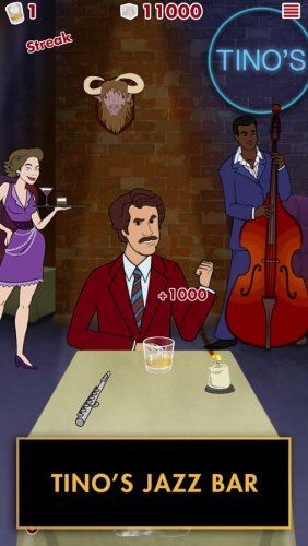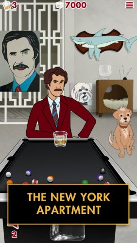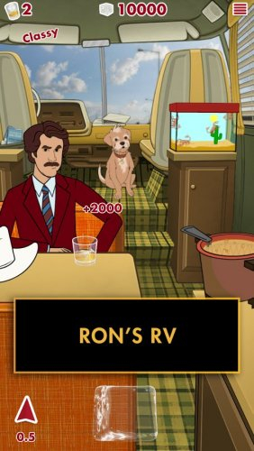 В этой игре вы сможете прослушать интересные истории от Рона Бургундии, однако чтобы он начал свою интересную речь, необходимо попасть в стакан кубиком льда.