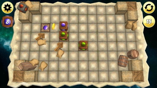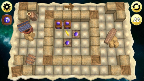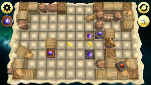 Головоломка Boxed! - 3D Puzzle имеет трёхмерный вид, что очень приятно и интересно, ведь вам предстоит передвигаться по карте и собирать золотые монеты.