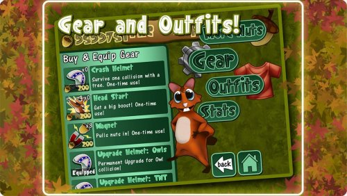 Управляйте летающим зверьком с помощью кнопок на сенсорном экране и собирайте желуди облетая деревья. На вас может напасть сова, вам нужно обхитрить ее, а также смотрите внимательно на них, они могут быть очень опасные, а к другим может быть привязан динамит.