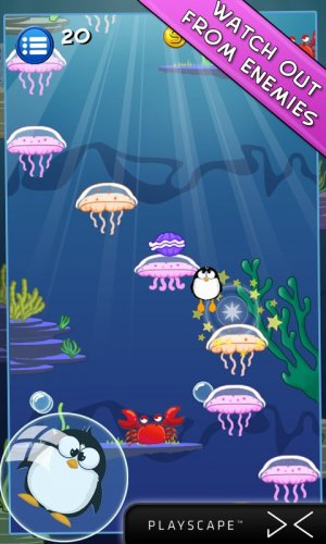 Наш герой ввязывается в очередные приключения и теперь ему нужно собирать сундуки, избегать врагов и перепрыгивать через медуз. Находите бонусы, собирайте сокровища и приобретайте новые предметы и улучшения в местном магазине. Управление Jelly Jump простое, с помощью акселерометра вы быстро разберетесь в азах пользования и начнете свое путешествие с пингвином Джелли.