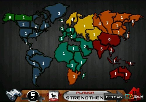 Чтобы пройти эту тактическую стратегию до конца, сохраняйтесь в нужный момент. Однако вам это может и не пригодится, ведь в Risked можно играть часами! По мере прохождения военной стратегии, вы получите новые звания, достижения и преимущества. Вы можете выбрать для прохождения карту Европы, мира и Северной Америки. Сможете стать лучшим на мировой арене?!