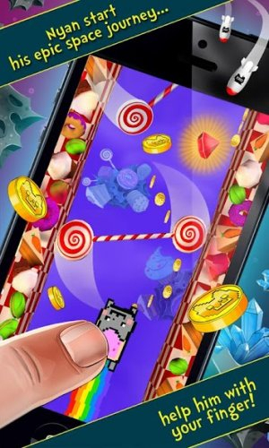 Все что вам нужно - это управлять котом на космической ракете. Вы должны помочь Няму пройти тяжелые испытания, облетая разные штуковины в виде сыра, леденцов и других необычных предметов, а также собирая золотые монетки и кристаллы.