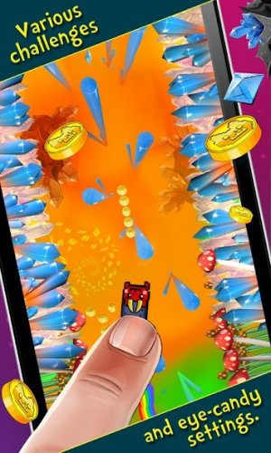 Управления в игре очень простое — прикоснувшись к Няму вы будете водить им по экрану, огибая различные преграды. Вы также можете собирать разные способности, что дадут персонажу временную защиту в виде щита, ускорения или замедления.