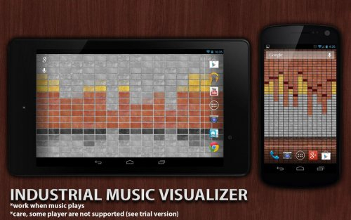 Если вы обожаете музыку, тогда вам непременно следует установить живые обои Industrial Music Visualizer! Они являются визуализатором музыки и смотрятся очень красиво и интересно на любом девайсе или планшете.