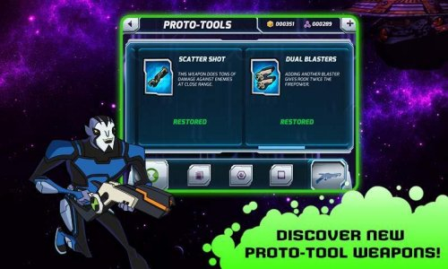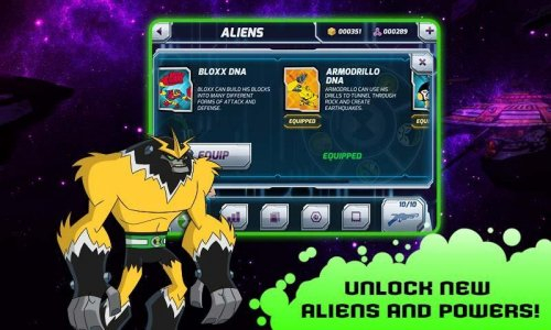 Персонаж может перевоплощаться в больших монстров, но для этого ему нужно найти утраченные гены ДНК. Так он сможет возобновить своих мутантов таких как: Ядро, Землерой, Рэта, Блокса, Глазастого, Шок-сквоча, Арктигуану и других. Кроме Бена, есть еще второй герой Рука, он также может найти другое оружие, например, лазерный лук, большой кинжал, кнут, сеточную пушку и много другого.