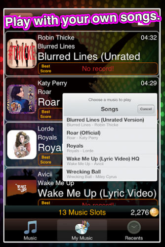 На вашем экране появится четыре зоны, по которым будут идти полосы. Вовремя нажимая на полосу, вы будете получать дополнительные очки, и озвучивать мелодию. Чем чаще вы будете попадать в такт, тем больше заработаете очков. В игре также можно использовать музыку, загруженную в смартфон/планшет.
