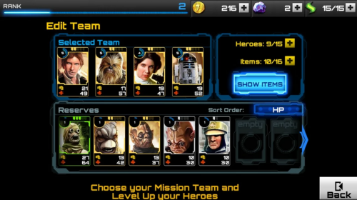 Для начала, вы соберете большую команду из главных героев этого замечательного фильма. Чтобы они стали сильнее, прокачайте их навыки и оружие. Когда штурмовая группа будет создана, можете переходить к атаке на вражеские войска. Так как игра посвящена Звездным Воинам, весь сюжет будет развиваться вокруг всех известных персонажей. Не забывайте собирать разнообразные вещи, которые будут выпадать из врагов. Благодаря им, вы сможете прокачать своих и приобрести новые умения.