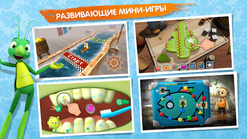 Приятная музыка из любимого мультика и звуки лопающихся мыльных пузырей поднимут настроение вашему чаду. А также при каждом запуске игры, у вас будет новая фоновая заставка. Аркада предлагает массу интересных занятий, которые помогут развить мышление и логику ребенка.