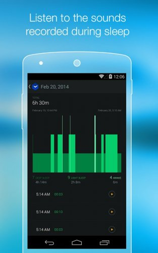 Над софтом работали не только программисты, но и ученые, которые задавали алгоритм работы. Как уже доказано, чтобы чувствовать себя хорошо, нужно проснуться в определенное время. А данная утилита, с помощью встроенного датчика, следит за состоянием сна, измеряет все шумы, движения и звуки, благодаря чему составляет анализ. Когда наступит подходящая фаза, будильник вовремя сработает и разбудит в подходящий для пробуждения момент.