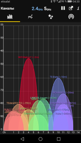 Благодаря приложению Wifi Analyzer, вы сможете протестировать окружающие вас wi-fi сети и найти те, которые менее загружены.