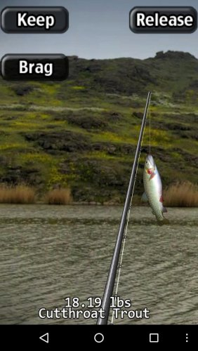 Здесь вы можете поймать множество разных видов, а свой спиннинг: окунь, семга, радужная форель, речная форель и других. Главной особенностью её является, то что вы делаете заброс спиннинга с помощью акселерометра. Помахивайте своим устройством вперед и назад чтобы дальше сделать заброс.
