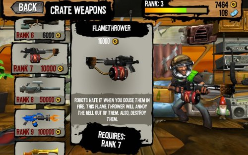 Игра понравится всем любителям аркад, где нужно бежать и прыгать. Но здесь кроме этого, придется еще и стрелять в роботов, а также подбирать ящики с оружием. Подобрав один из таких сундуков, у вас появится дополнительное оружие в виде автомата, винтовки, дробовика.