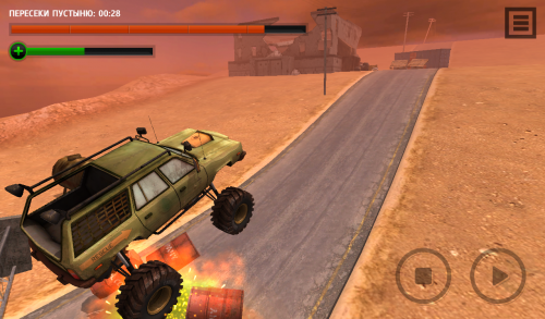 Но чтобы это сделать, потребуется проехать много опасных мест и остаться в живых. Так, на вашем пути будут попадаться горящие бочки, пропасти, ямы, дорожные аварии, высокие горы, шины и тд. Каждое из препятствий можно перепрыгнуть или объехать, на что требуется время. Главное - сохраните свою машину!