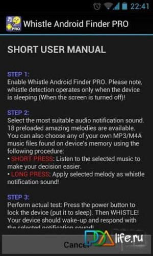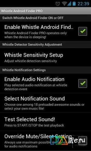 Для успешного использования приложения, нужно помнить о том, что свист должен быть не слишком тихим, а устройство переведено в спящий режим. Также стоит отметить, что Whistle Android Finder PRO практически никак не влияет на расход заряда аккумулятора.